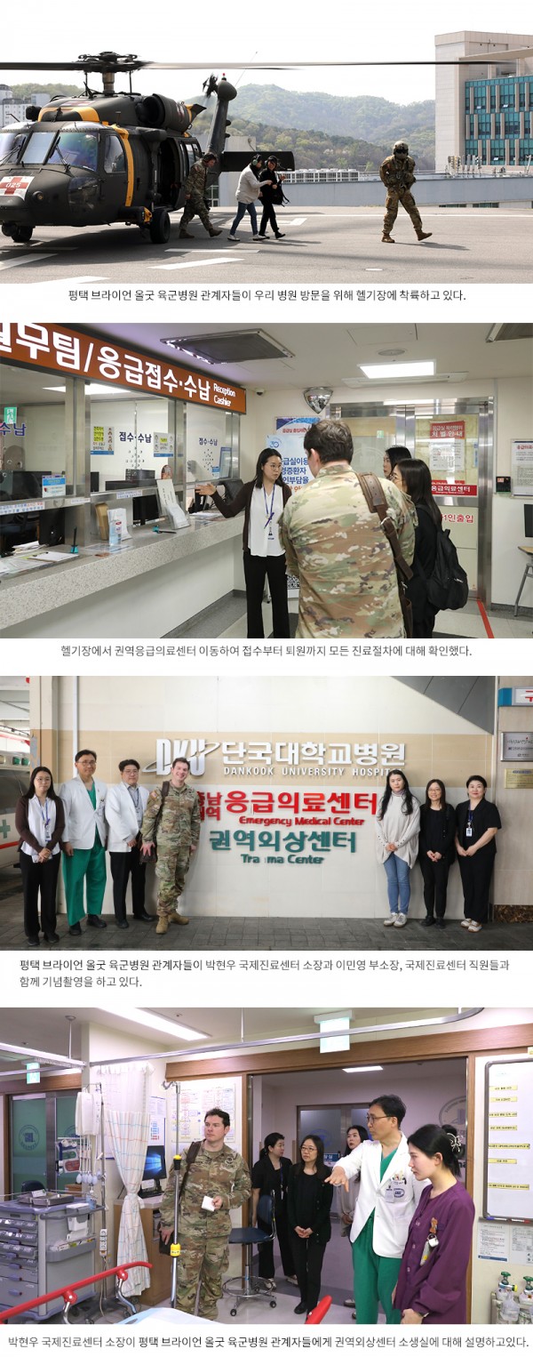 지난 4월 17일, 평택 브라이언 올굿 육군병원(Brian D. Allgood Community Hospital)의 관계자들이 응급환자의 헬기이송 및 진료시스템을 직접 체험하기 위해 우리 병원을 방문했다.