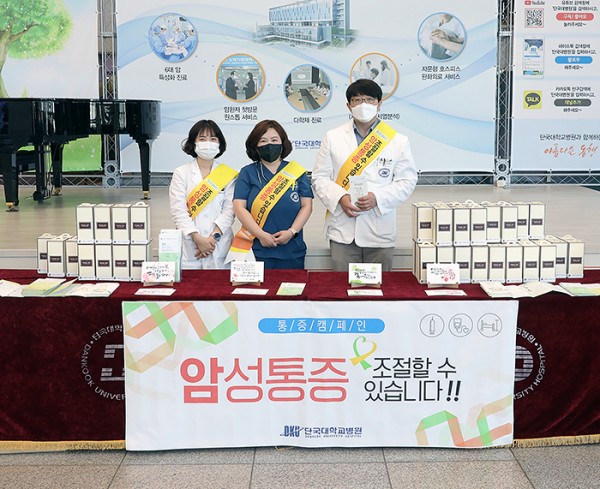 단국대병원(병원장 김재일)은 지난 20일 병원 로비에서 ‘암성통증, 조절할 수 있습니다’를 주제로 통증 캠페인을 벌였다. 이번 캠페인은 암성통증 관리에 대한 올바른 인식을 확산하고 암환자의 효율적인 통증 관리를 돕기 위해 진행됐다.