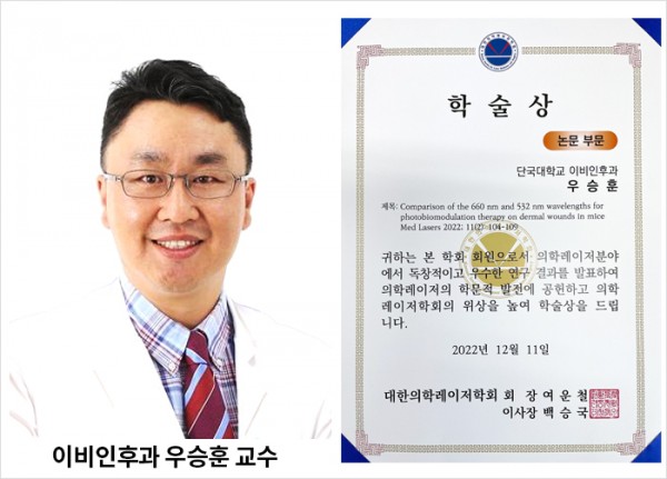 이비인후과 우승훈 교수가 지난 12월 11일 서울 삼정호텔에서 열린 대한의학레이저학회 제39차 정기학술대회에서 그간의 우수한 학술적 연구성과를 통해 학회에 기여한 공로를 인정받아 ‘학술상’을 수상했다.
