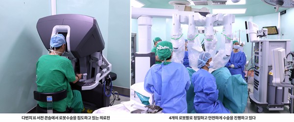 ‘다빈치 Xi’는 최소침습적 수술 방식으로, 환자의 몸에 작은 구멍을 내고 4개의 로봇팔을 삽입한 뒤 의사가 콘솔을 통해 원격으로 수술을 조정하는 자동화 로봇수술 시스템이다. 고해상도 3D HD 화면을 통해 수술 부위를 최대 15배 확대해 정밀한 수술이 가능하며, 손떨림 없는 로봇팔로 인해 미세한 신경이나 혈관 부위에서도 정확한 수술이 가능하다. 이러한 기술적 강점으로 인해 다빈치 Xi는 복강경 수술에 비해 출혈과 감염, 통증이 적다. 흉터도 거의 없으며 입원기간도 짧아 환자의 빠른 회복과 높은 만족도를 기대할 수 있다.