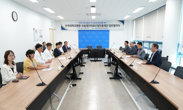 단국대병원(병원장 김재일)은 지난 2일 암센터 회의실에서 오송첨단의료산업진흥재단(KBIOHealth, 이사장 이명수)과 바이오·의료 분야의 공동연구와 기술 교류 활성화를 위한 전략적 업무협약을 체결했다.