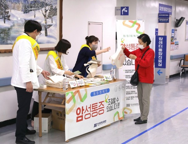 행사를 진행한 혈액종양내과 이한상 교수는 “통증은 암 환자들이 겪는 가장 흔하면서도 고통스러운 증상 중 하나로 적절히 치료하면 90% 이상 좋아질 수 있지만, 많은 암 환자들이 참고 표현하지 않는 경우가 많다. 진통제로 인한 중독은 거의 일어나지 않고, 힘든 투병 기간 일상생활을 유지하고 견디는 데 도움이 되는 만큼 암 환자들이 적극적으로 표현하고 치료받기 바란다”라고 말했다.
