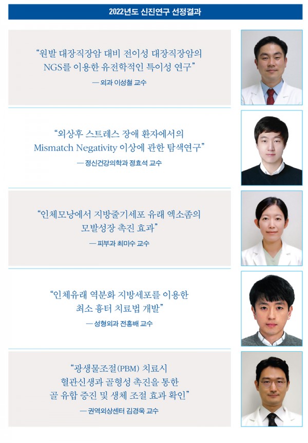 정필상 임상의학연구소장은 “이번 신진 연구비 지원사업을 계기로 체계적인 연구시스템을 구축하여 젊은 신진연구자들이 연구역량을 강화하고, 연구 결과물의 실용화를 위해 지속적으로 지원해 나갈 계획”이라고 밝혔다.