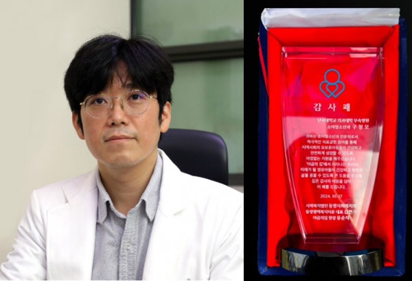소아청소년과 구청모 교수가 지난 10월 17일 ‘사회복지법인 동방사회복지회 동방평택복지타운 2024년 사회공헌 감사패’를 수상했다.