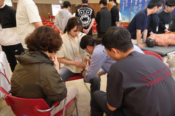강의 후에는 조별로 기도확보 및 비디오후두경검사방법, 외부 출혈관리, 총상, 자상 등 중증외상환자 응급치료, 자동심폐소생술 장치 및 골반부목고정 등을 직접 해보는 실습시간도 가졌다. 참석자들은 “이론과 함께 실제 구급현장에서 외상환자의 유형에 따라 기도삽관을 비롯한 지혈, 부목을 고정해야 하는 응급상황에서 실전과 같은 실습과정이 큰 도움이 되었다"고 말하며, "실습을 통해 직접 시연을 할 수 있어서 앞으로 환자 구급활동에도 큰 도움이 될 것 같다”고 소감을 전했다.