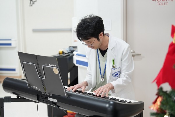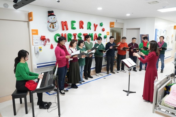 자문형 호스피스를 담당하고 있는 조성욱 교수(혈액종양내과)의 피아노 연주로 문을 연 음악회는 자원봉사자의 감미로운 솔로 무대, 천아마을 합창단의 크리스마스 메들리, 그리고 완화의료병동에 입원 중인 환자의 기타 연주까지 이어지며 깊은 울림을 전했다. 환자와 보호자들은 음악에 귀 기울이며 서로 손을 잡거나 눈시울을 붉히는가 하면, 미소 속에 따뜻한 연말의 정취를 함께 나눴다.