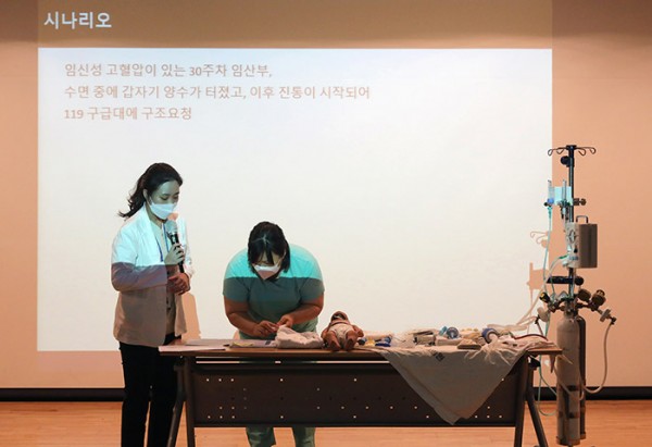 ▲자간증 임산부의 환자평가 및 응급처치, 출산 및 응급분만에 대해서는 단국대병원 산부인과 강윤단 교수가 강의했으며, 이어 소아청소년과 김지선 교수와 김승호 교수는 ▲신생아·영아·소아·유아 환자평가, ▲신생아 환자 심정지 응급처치에 대해 강의했다.