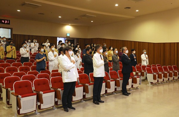 마지막으로 “빠르게 변하는 이 시대에 이 자리에 멈춰있다는 것은 후퇴하고 있다는 말과 같다. 중요한 것은 내일이며 미래다. 현재에 안주하지 않고 단국대병원의 5년 10년 후의 우리의 모습을 보며 꿈꾸며, 근본이 탄탄한 단국대병원을 만들기 위해 같이 노력하자”고 당부했다.