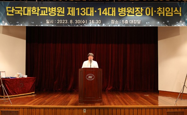 신임 김재일 병원장은 취임사에서 여려운 여건에서 고생한 이명용 병원장에게 감사를 전하며, “현재 우리 앞에 놓인 상황이 녹록치 않다. 특히 우리 지역 인근의 여러 병원이 새병원과 분원을 준비하고 있어 환자 분산이 우려되지만, 이 모든 위기는 우리 교원의 능력과 교직원의 역량으로 이겨낼 수 있다고 확신한다”라고 말했다. 이어 “단국대병원의 뿌리는 단국대학교다. 학교가 있었기 때문에 병원이 생길 수 있었다. 학교에서는 병원을 견인하고, 병원에서는 학교를 견인하면서 발전해나갈 수 있을 것이다. 재임 기간 낡고 경직된 제도나 행정, 권위주의가 있다면 변화시킬 것이며, 더 나은 단국대병원의 미래 비전을 제시하고 함께 울고 웃는 리더가 될 것”이라고 말했다.