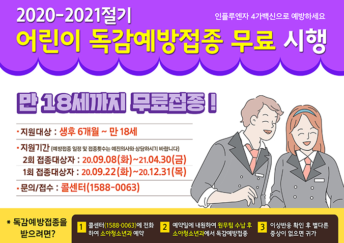 만 18세 이하 어린이 무료 인플루엔자 접종안내