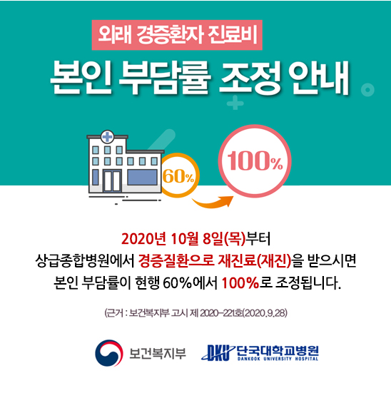 외래 경증환자 진료비 본인 부담률 조정 안내