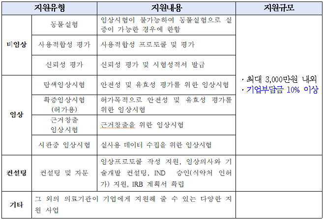 □ 지원내용 : 천안 기업이 개발한 혁신적인 미래의료 분야의 임상 및 비임상 실증평가 및 컨설팅