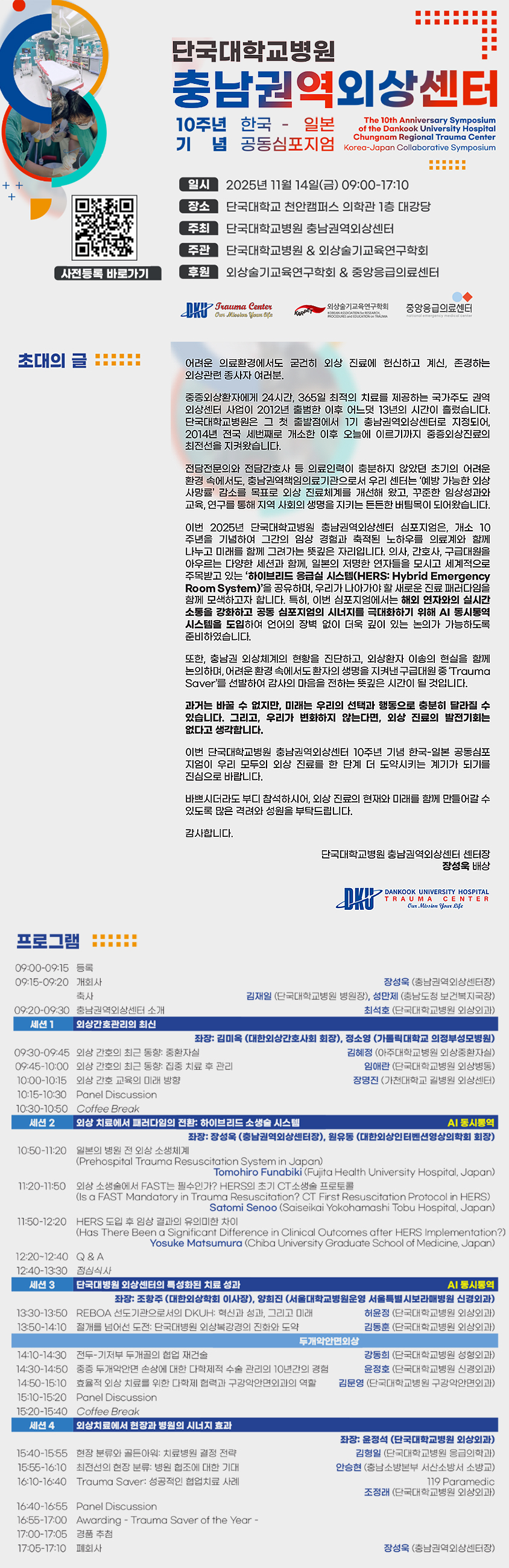 [11.14(금)] 단국대학교병원 충남권역외상센터 10주년 기념 한국-일본 공동 심포지엄