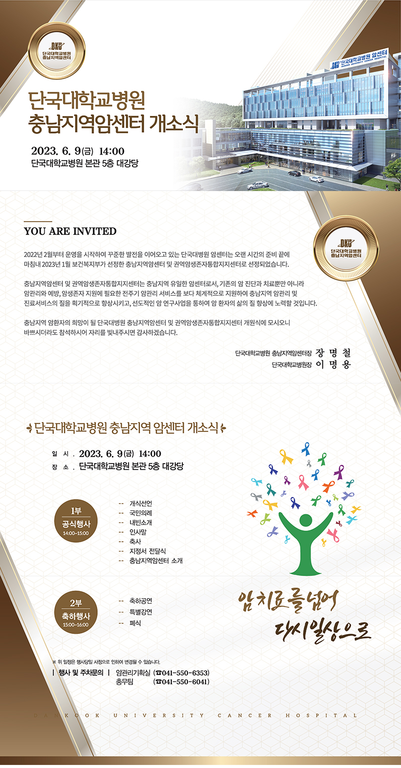 [6.9] 충남지역암센터 개소식 안내 페이지 정보 작성자 |관리자 작성일 |2023-05-12 16:58 조 회 |6,882회 댓 글 |0건 관련링크 이전글 다음글 목록 본문 이전글 다음글 목록