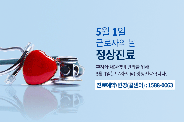 [진료안내] 5월 1일 근로자의 날 정상진료합니다. > 병원소개 > 병원소식 > 공지사항 | 사랑이 숨쉬는 인술의 요람 - 단국대학교병원 홈페이지입니다.