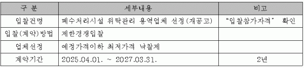 폐수처리시설 위탁관리 용역업체 선정 입찰(재공고)