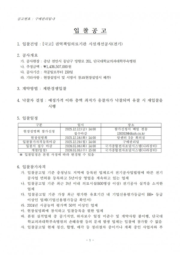 [국고] 권역책임의료기관 시설개선공사(전기) 페이지 정보 작성자 |김동진 작성일 |2025-12-04 16:46 조 회 |243회 댓 글 |0건 관련링크 이전글 다음글 목록 본문 이전글 다음글 목록