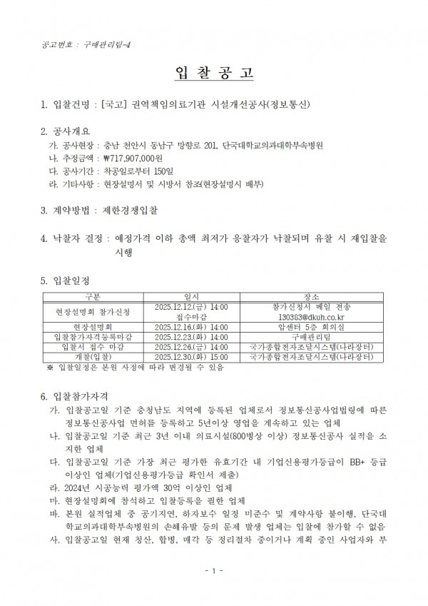 [국고] 권역책임의료기관 시설개선공사(정보통신) > 병원소개 > 병원소식 > 입찰정보 | 사랑이 숨쉬는 인술의 요람 - 단국대학교병원 홈페이지입니다.