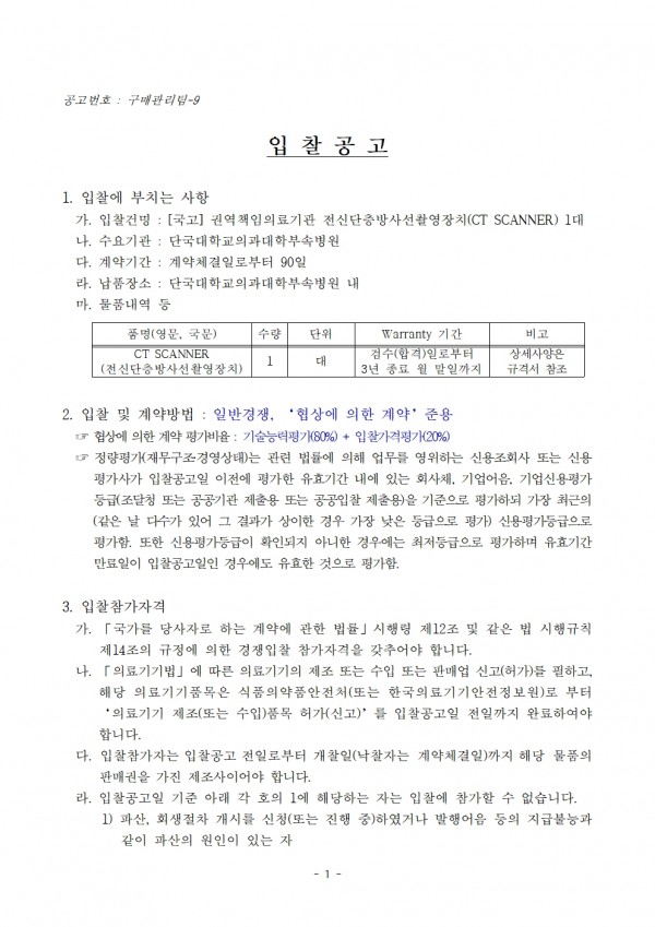 [국고] 권역책임의료기관 전신단층방사선촬영장치(CT SCANNER) 1대 > 병원소개 > 병원소식 > 입찰정보 | 사랑이 숨쉬는 인술의 요람 - 단국대학교병원 홈페이지입니다.