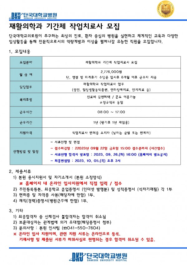 재활의학과 기간제 작업치료사 모집 페이지 정보 작성자 | 김혜원 작성일 | 작성일23-09-13 11:40 조회 | 10,643회 댓글 | 0건 관련링크 이전글 다음글 목록 본문 이전글 다음글 목록