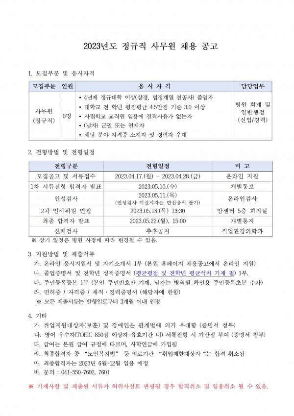 2023년도 정규직 사무원 모집 페이지 정보 작성자 | 김동진 작성일 | 작성일23-04-14 11:14 조회 | 17,628회 댓글 | 0건 관련링크 이전글 다음글 목록 본문 이전글 다음글 목록