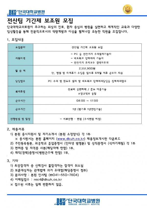 전산팀 기간제 보조원 모집