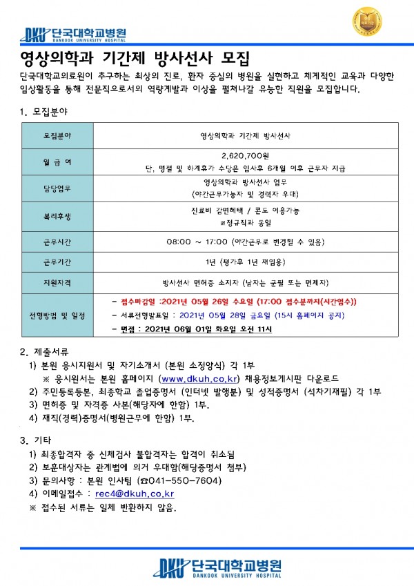 영상의학과 기간제 방사선사 모집