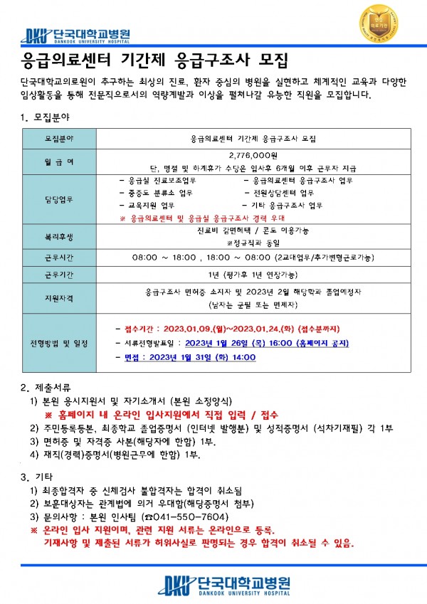 응급의료센터 기간제 응급구조사 모집 페이지 정보 작성자 | 김혜원 작성일 | 작성일23-01-09 19:55 조회 | 15,775회 댓글 | 0건 관련링크 이전글 다음글 목록 본문 이전글 다음글 목록