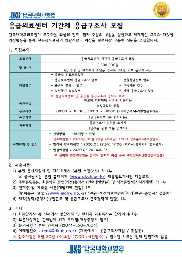 응급의료센터 기간제 응급구조사 모집