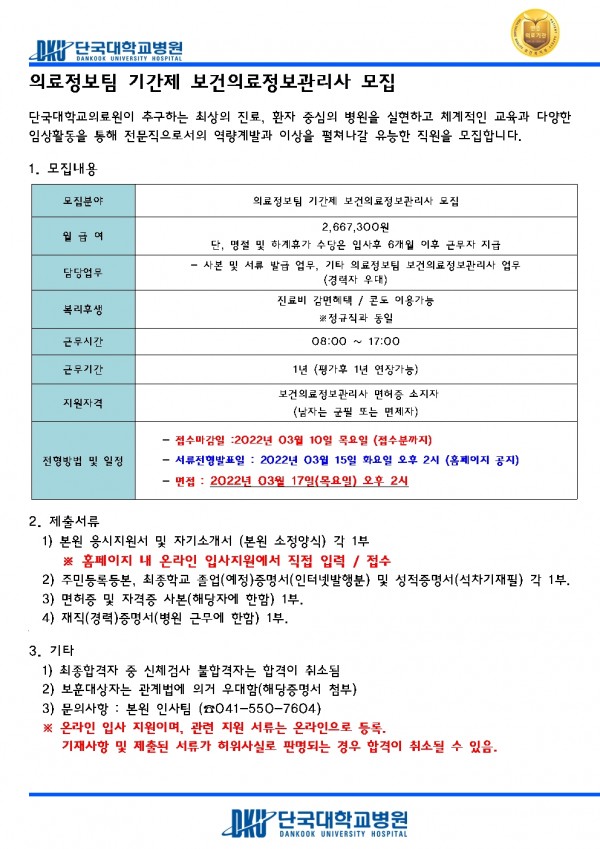 의료정보팀 기간제 보건의료정보관리사 모집 페이지 정보 작성자 | 김혜원 작성일 | 작성일22-02-25 17:59 조회 | 20,762회 댓글 | 0건 관련링크 이전글 다음글 목록 본문 이전글 다음글 목록