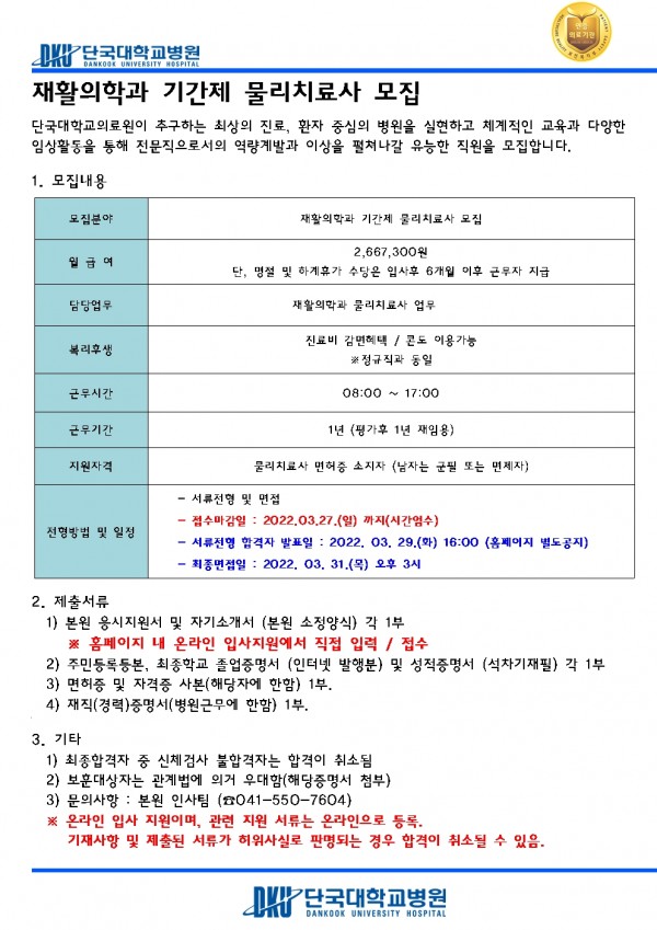 재활의학과 기간제 물리치료사 모집 페이지 정보 작성자 | 김혜원 작성일 | 작성일22-03-18 10:27 조회 | 20,715회 댓글 | 0건 관련링크 이전글 다음글 목록 본문 이전글 다음글 목록