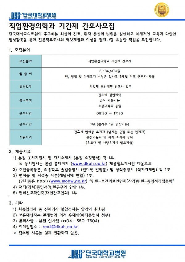직업환경의학과 기간제 간호사 (사업체보건대행) 모집