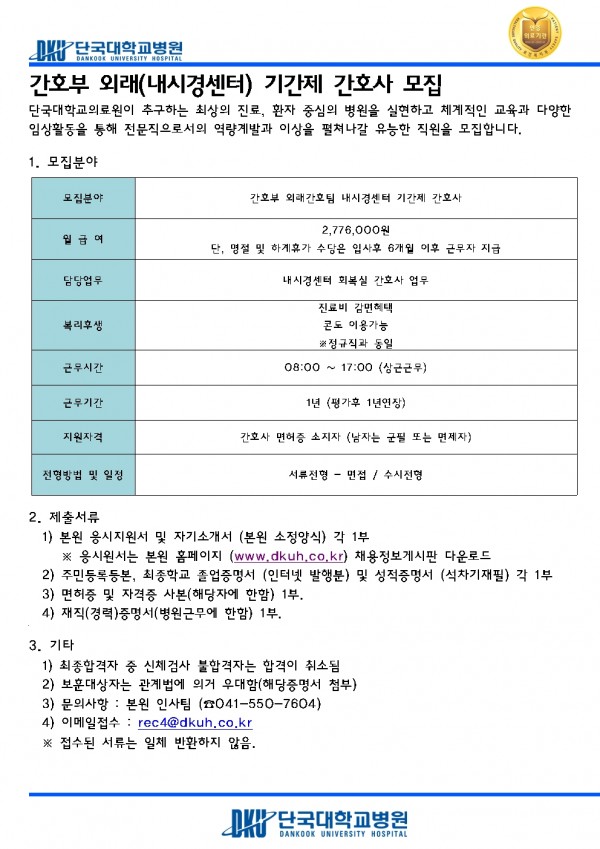 간호부 외래(내시경센터) 기간제 간호사 모집