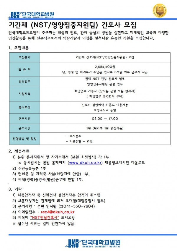 기간제 간호사(NST/영양집중지원팀) 간호사 모집