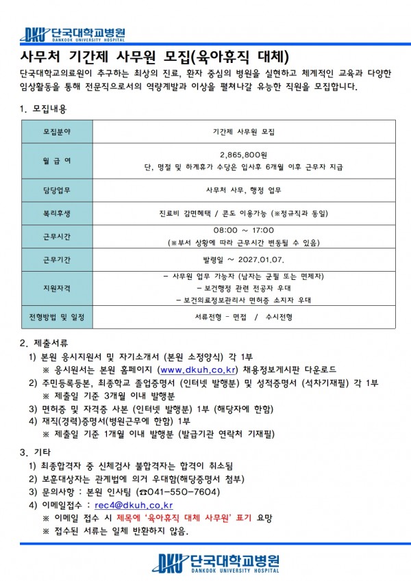 사무처 기간제 사무원 모집(육아휴직 대체)