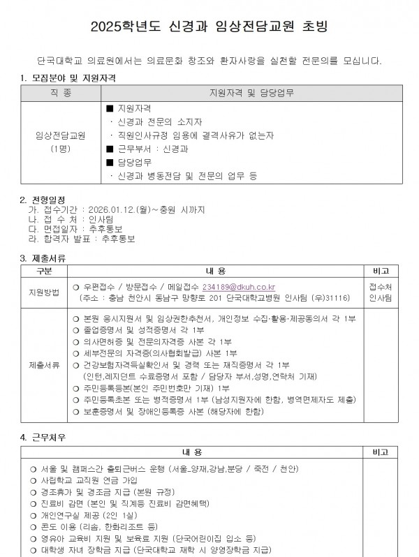 2025학년도 신경과 임상전담교원 초빙