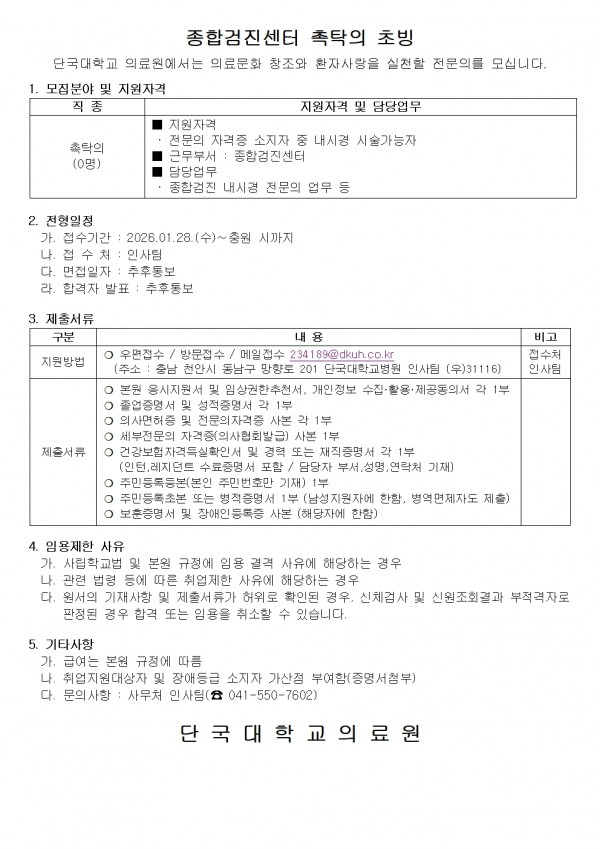 종합검진센터 촉탁의 초빙