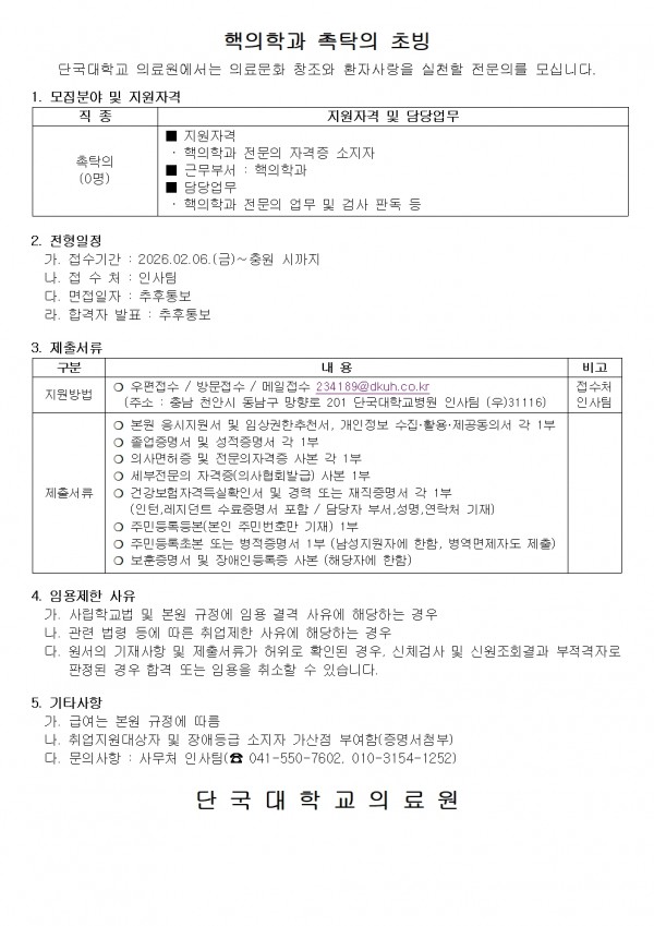 핵의학과 촉탁의 초빙