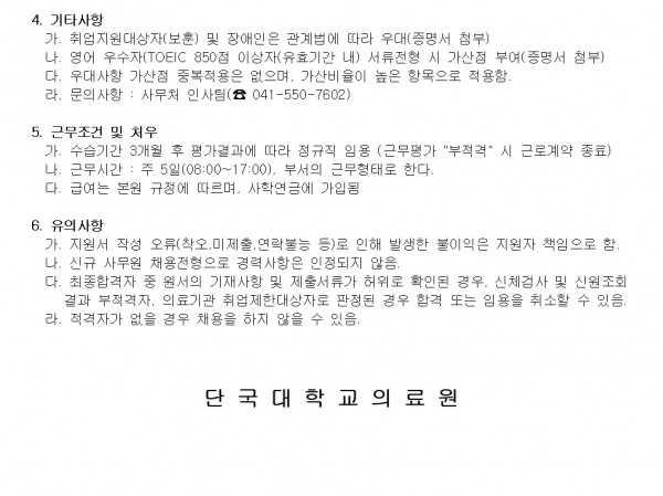 2025학년도 정규직(신규) 사무원(행정) 채용 공고 > 병원소개 > 병원소식 > 채용공고 | 사랑이 숨쉬는 인술의 요람 - 단국대학교병원 홈페이지입니다.