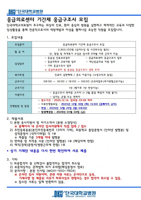 응급의료센터 기간제 응급구조사 모집 페이지 정보 작성자 | 김진우 작성일 | 작성일25-12-03 17:03 조회 | 1,654회 댓글 | 0건 관련링크 이전글 다음글 목록 본문 이전글 다음글 목록