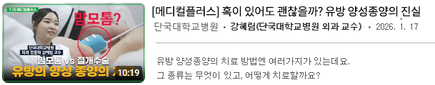 1. TJB대전방송(2026.1.17) - [메디컬플러스] 혹이 있어도 괜찮을까? 유방 양성종양의 진실