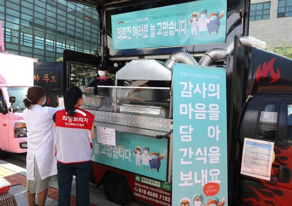 ‘희망브리지-배달의민족’, 단국대병원 의료진과 종사자에게 푸드트럭 간식 지원