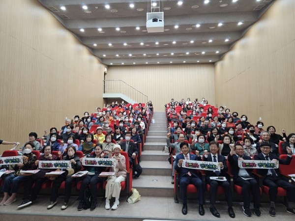 우리 병원과 천안시 서북구보건소가 공동으로 주관하는 ‘제14기 보건소 건강대학’ 개강식이 10월 13일 천안시 축구센터 대회의실에서 열렸다. 코로나19 여파로 3년 만에 재개한 건강대학 개강식에는 정도희 천안시의회 의장, 이현기 천안시 서북구보건소장, 김재일 병원장을 비롯하여 보건소 건강대학 수강생 120여 명과 우리 병원 및 보건소 관계자들이 참석했다.