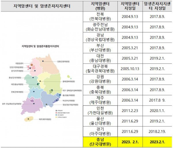 충남 지역암센터 및 권역암생존자통합지지센터 선정