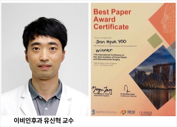 이비인후과 유신혁 교수가 지난 2월 21일부터 22일까지 양일간 싱가포르에서 개최된 제11회 범(凡)아시아안면성형재건학회(11th International Conference Of Pan Asia Academy Of Facial Plastic And Reconstructive Surgery ; PAAFPRS)에서 최우수 구연 발표상을 수상했다. PAAFPRS는 안면성형재건분야의 유명한 국제학회이다.