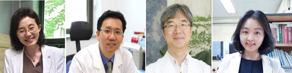 (왼쪽부터) 정현경 교수, 유원상 교수(단국대학교병원 내분비대사내과), 박진우 교수, 구유정 교수(충북대학교병원 내분비대사내과)