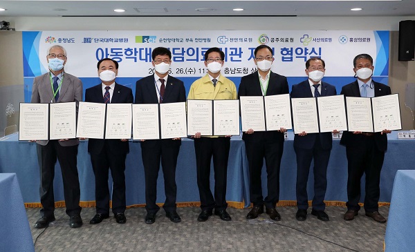 지난 26일 충남도청에서 진행된 ‘아동학대 전담의료기관 지정 협약식’에서 단국대병원을 포함한 충남도내 6개 종합병원이 충남도로부터 아동학대 전담의료기관으로 지정받았다.