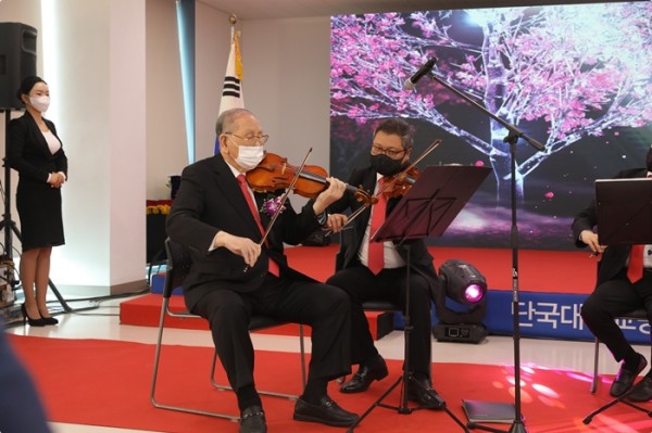 (공식행사 전 장충식 단국대학 명예이사장과 포시즌 앙상블이 암센터 개원을 축하하는 식전공연을 진행했다.