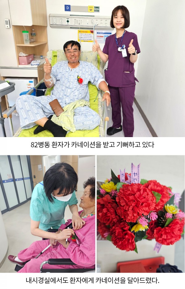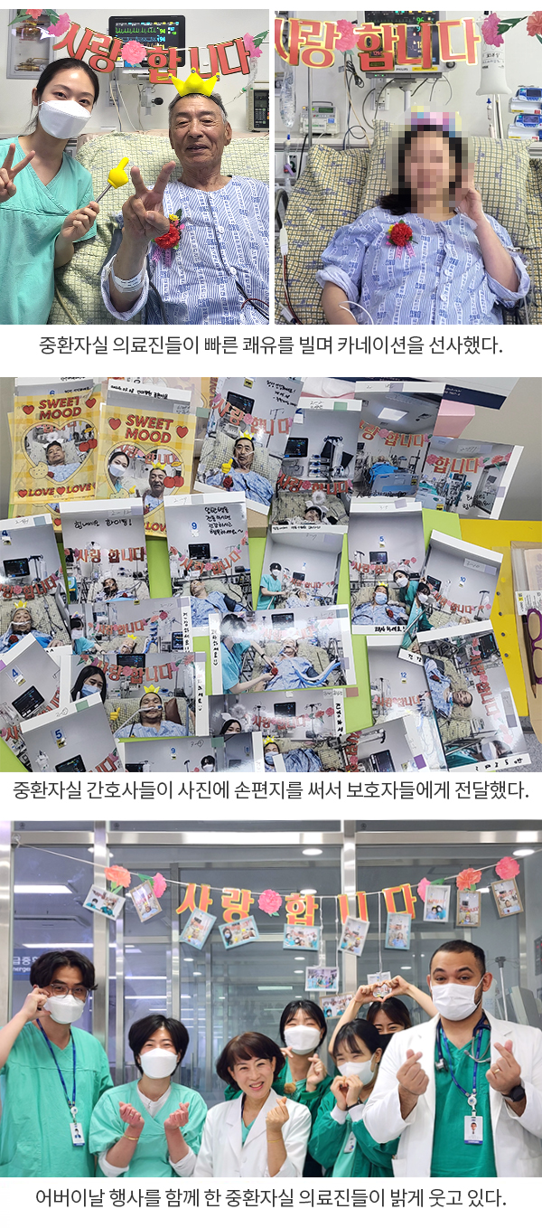중환자실에서는 환자들에게 카네이션을 달아드리고 사진을 찍어 보호자에게 전달하는 행사를 진행하였다. 환자들은 침상에 누워서도 환한 미소를 지으며 의료진들의 마음에 감사를 전했다. 중환자실 의료진들은 환자들의 빠른 쾌유를 기원하며 함께 찍은 사진으로 포토갤러리를 만들어 전시하기도 하였다.