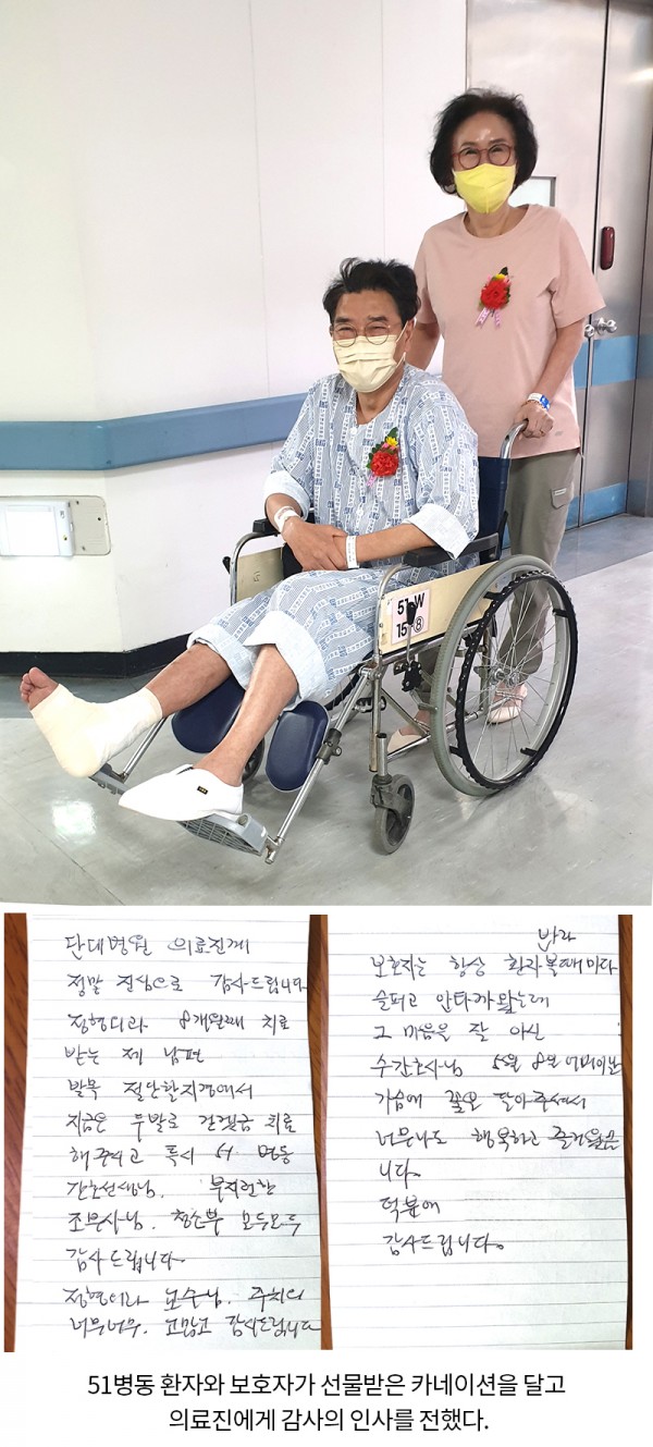병동에 입원 중인 한 정형외과 환자는 "8개월째 치료받는 환자를 잘 치료해 주신 정형외과 의료진 분들과 병동 관계자분들께 진심으로 감사하다. 게다가 어버이날에 잊지 않고 꽃도 달아주셔서 너무나도 행복한 추억이 되었다. 감사드린다"고 밝혔다.